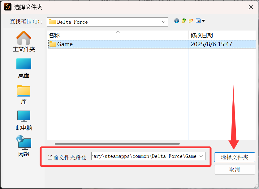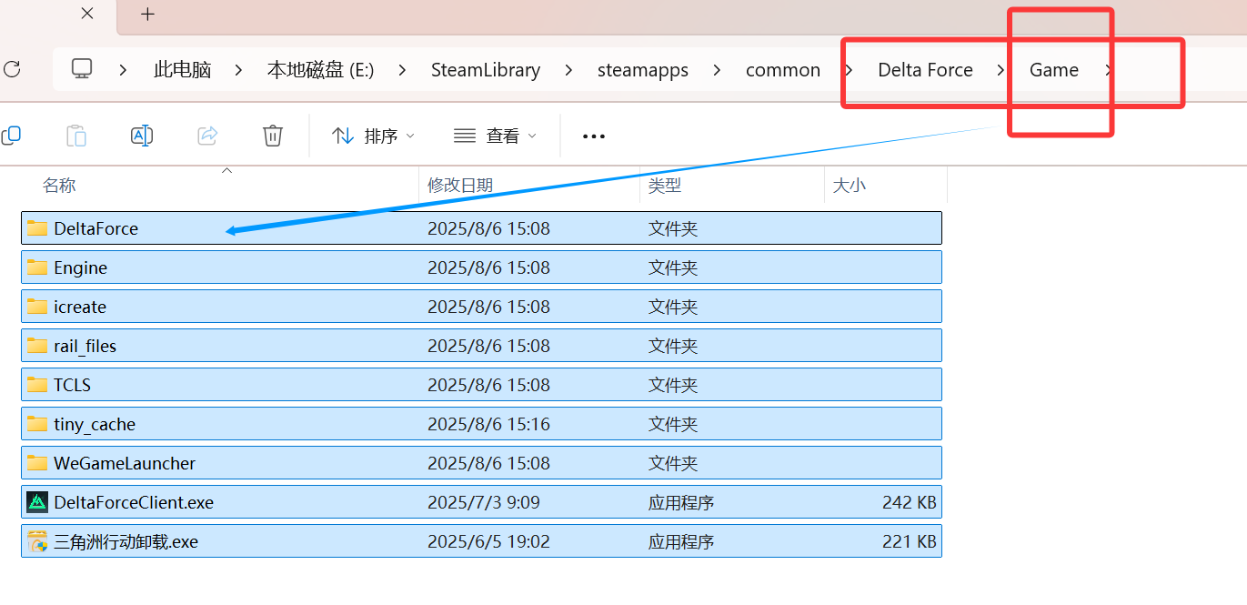 此时找到三角洲行动的资源文件,将目录内文件剪贴至刚刚创建的Game文件夹中。